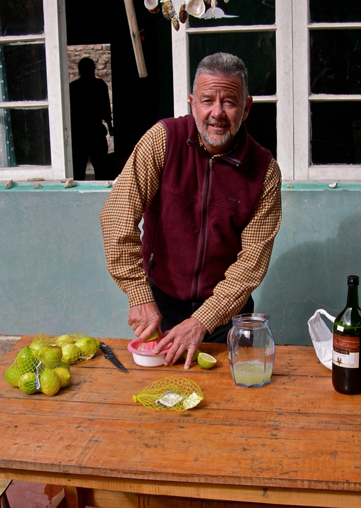 Don Rōbert preparing for “Pisco Hour” at casa de Tim, a long time ago … Rio Blanco Chile